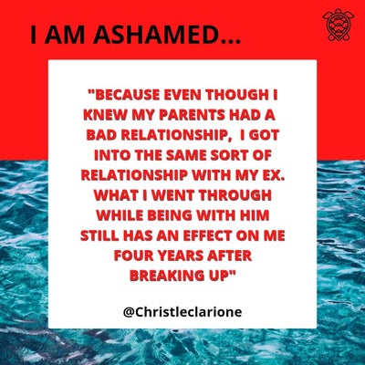 NL "Ik schaam me want hoewel ik wist dat mijn ouders een slechte relatie hadden, kreeg ik een soortgelijke relatie met mijn ex. Ik heb vier jaar na onze breuk nog last van deze relatie" PAP" Mi tin berguensa pasombra aunke mi a mira ku e relashon di mi ma